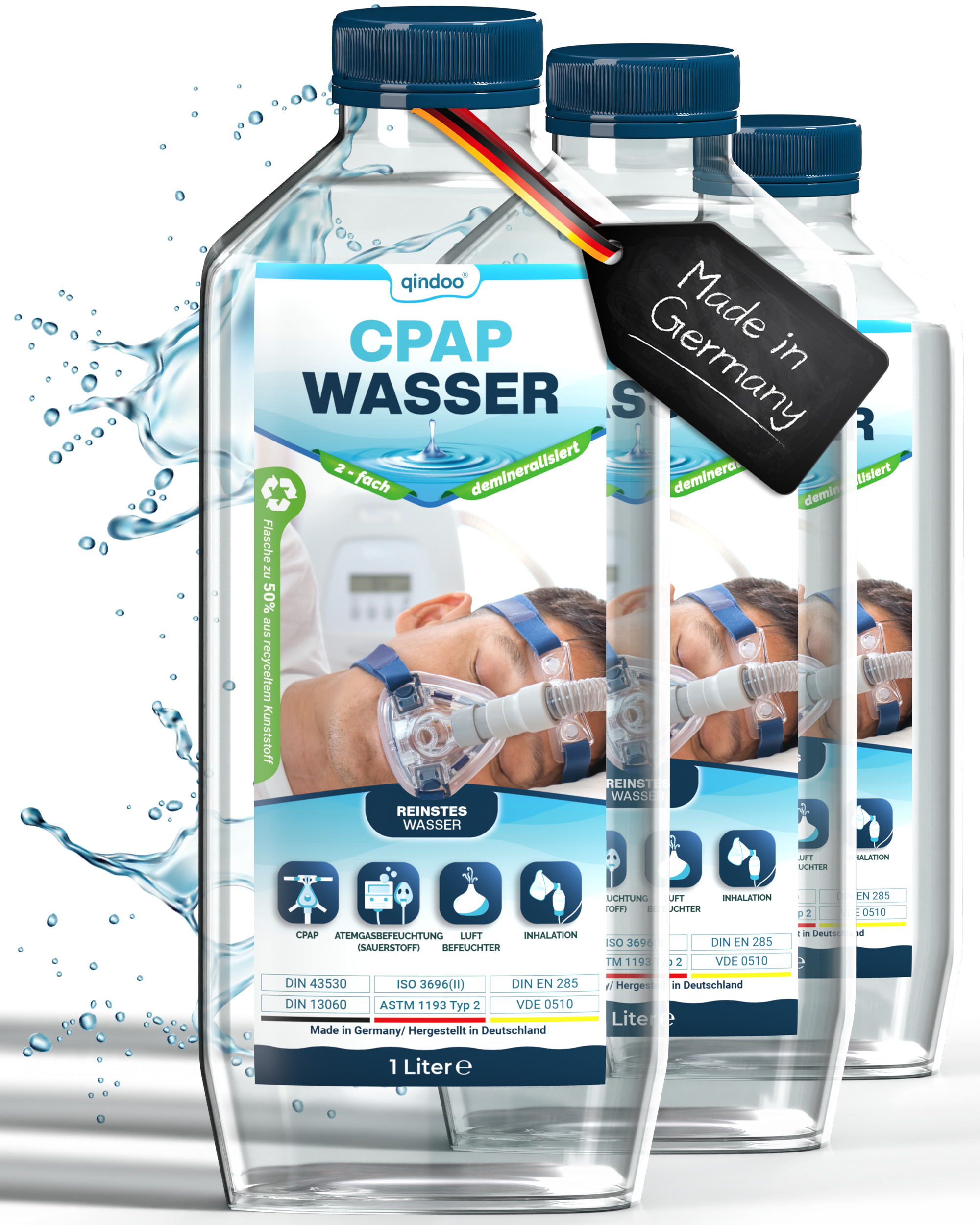 3x Qindoo CPAP Wasser für Sauerstoffgerät, Inhalator, Luftbefeuchter, Verdampfer, Bedampfer, Atemgas